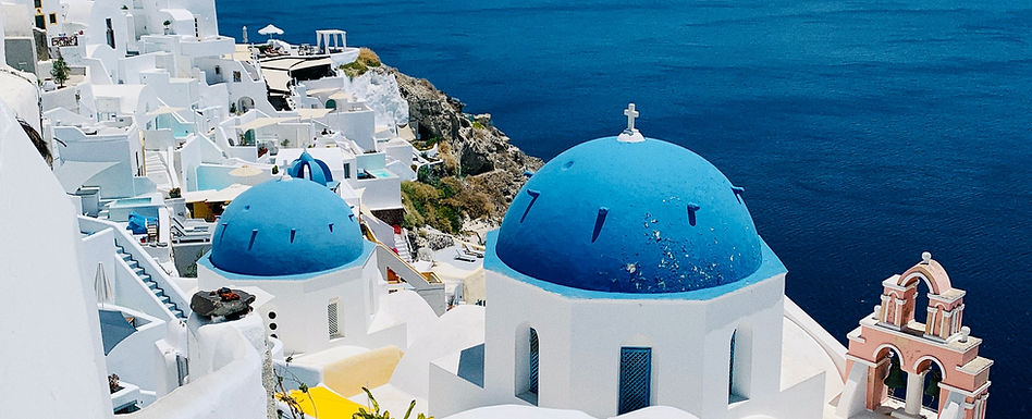 Scogliere bianche sospese sulla caldera, case scolpite nella roccia e tramonti che trasformano il mare in un quadro silenzioso e profondo.